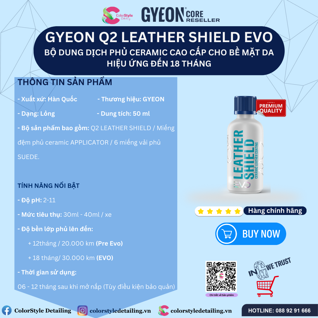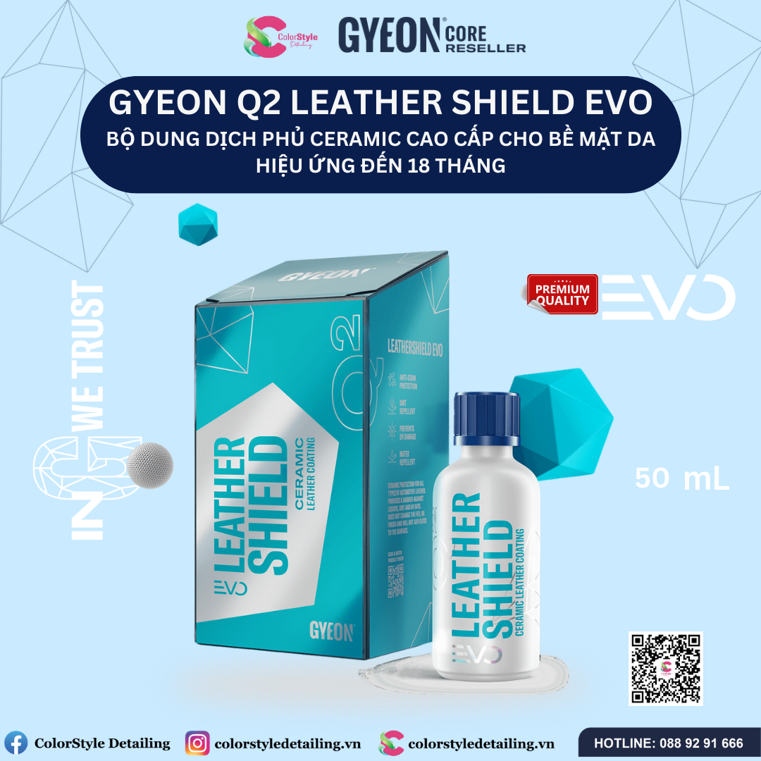 - Tên sản phẩm: Bộ Dung Dịch Phủ Ceramic Cao Cấp Cho Bề Mặt Da GYEON Q2 Leather Shield EVO