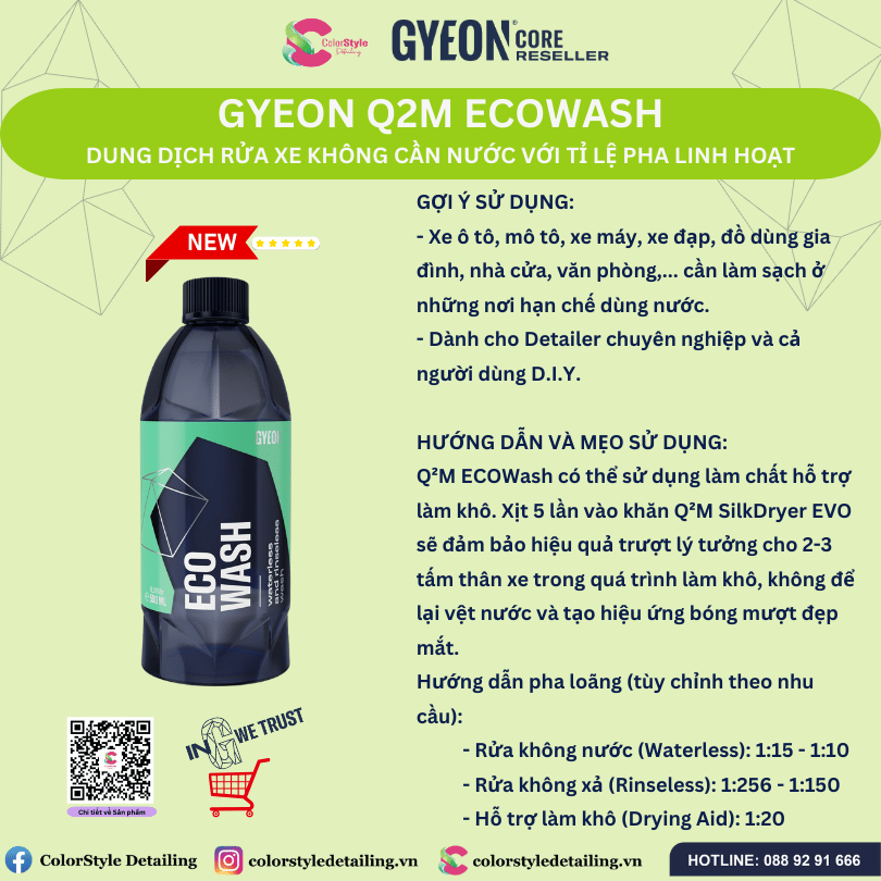 DUNG DỊCH RỬA XE KHÔ GYEON Q2M ECO WASH, TỈ LỆ PHA LINH HOẠT