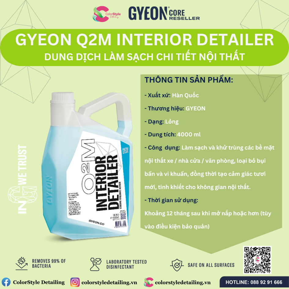 GYEON Q2M Interior Detailer, Dung Dịch Làm Sạch Chi Tiết Nội Thất